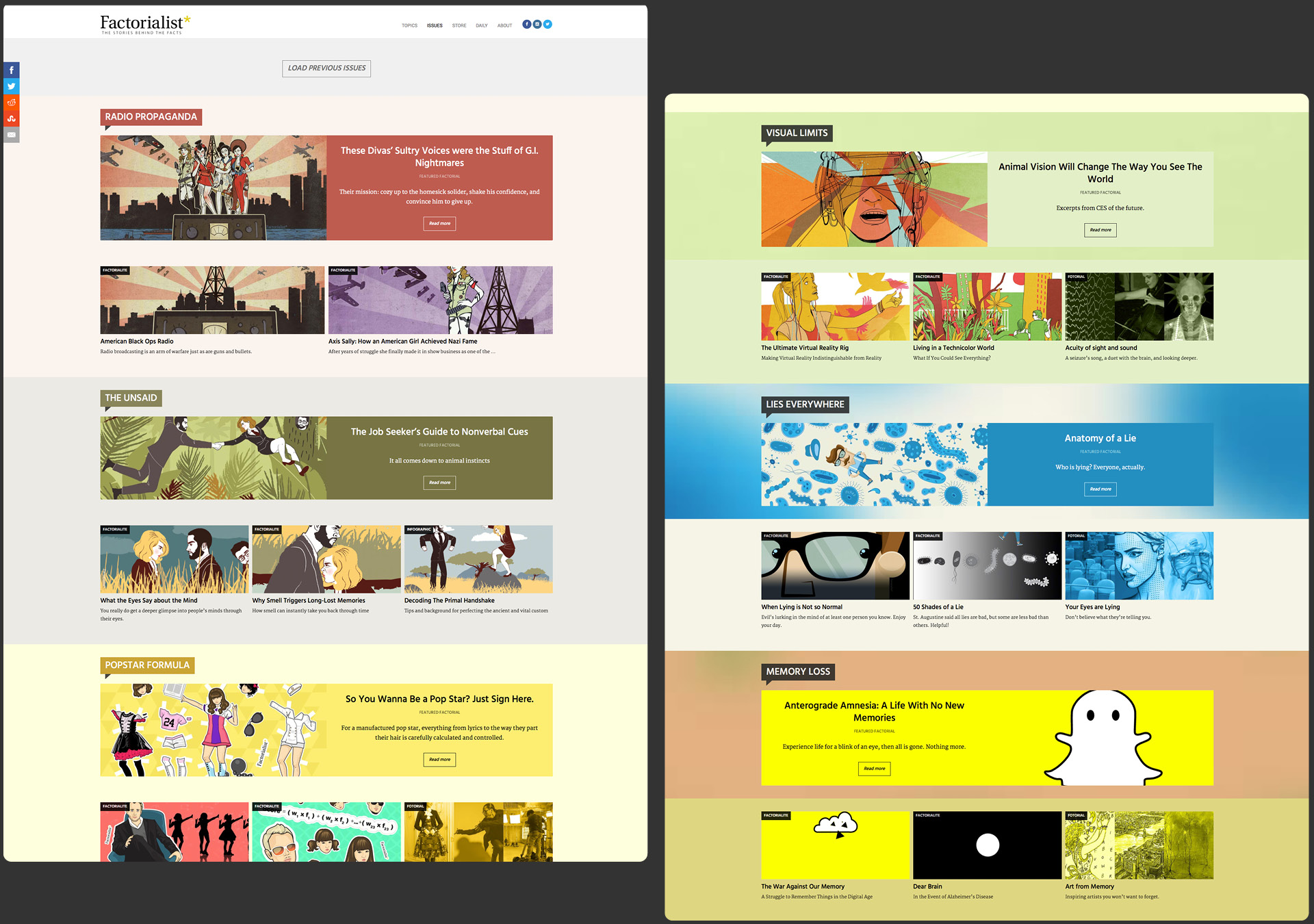 I, along with my cofounder, designed and built an entirely new web magazine from the ground up. Our goal was to create interesting content that breaks through the mindless Buzzfeeds by exploring the world through beautiful visuals, original illustrations, and infographics.